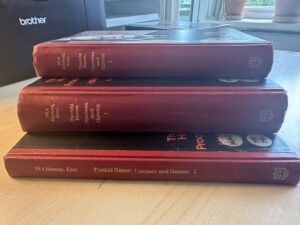 The three volumes : 376 pages of the first volume documenting the beginnings of the German invasion to Norway and the fled of the king & Government to London, while Quisling, who was condemned to death by Norwegian court after the war was over, took charge of the collaboration with the Nazi’s through his NS party ; 158 pages of the second volume, concentrated mainly on his wife, her letter to Norwegian mothers to send their sons to the front to fight the communists and accepting her son Arild to take the lead, her imprisonment, her collapse and her many visits to Germany lecturing & received as a prominent cultural personality , together with her alleged relations to other men…osv; and the third volume of 305 pages mainly dealt with the process, the return of Marie to the house, his death and the aftermath period, signalling his rehabilitation both in Norway and world wide.